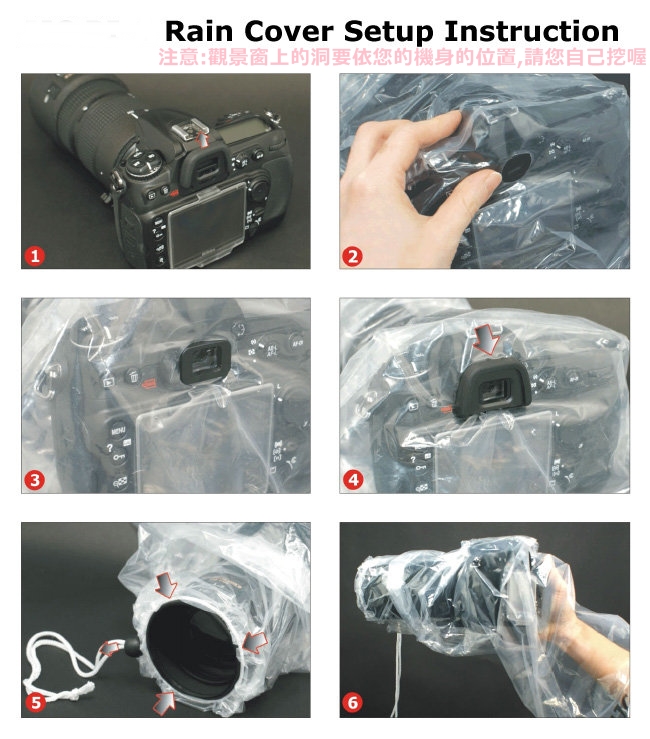 這樣雨衣就不會影響照片的品質且不會同其它款雨衣一樣,若有裝閃燈時,水從閃燈那流進來~~~